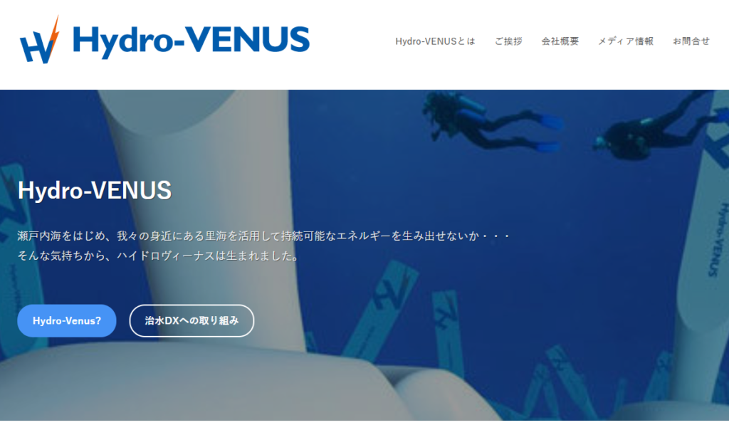 ハイドロヴィーナスは2015年1月設立の岡山大学発ベンチャーで、同大学学術研究院環境生命自然科学学域・比江島慎二教授が発明した振り小型発電機技術「Hydro-VENUS (Hydrokinetic Vortex Energy Utilization System)」を基に、川の流れを用いて発電やセンシングを行うシステムの開発を行っている。